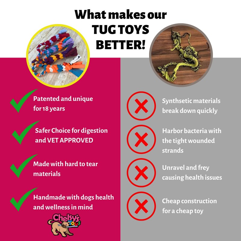 - Durable Tug Toy for Aggressive Chewers: Unlike traditional rope toys, this tug toy is made with soft yet durable fleece that won’t fray, making it safe for even the most energetic chewers and puppies.
