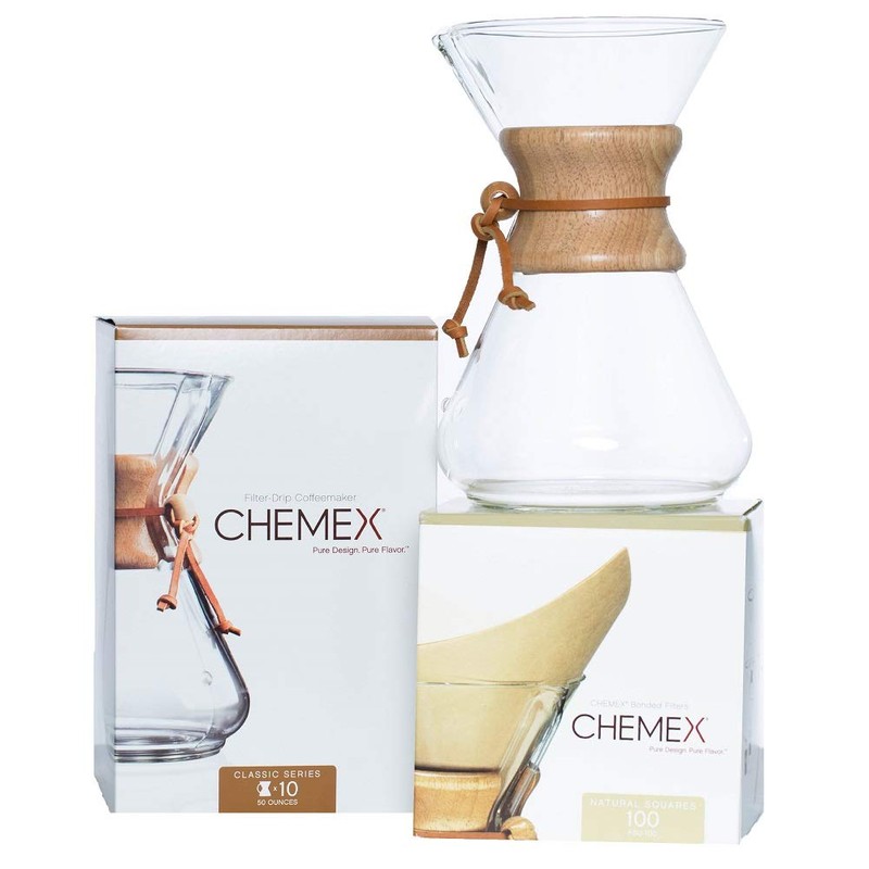 Chemex Bundle - 10-Cup Classic Series - 100 ct Square Filters - Exclusive Packaging