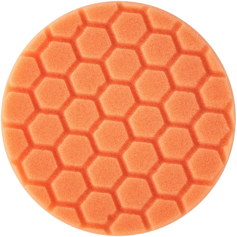 The Orange Self-Centered Hex-Logic Medium/Heavy Cut Scratch and Swirl Remover is a firm, high density foam pad that is ideal for scratch and defect removal. This pad offers the correction of a typical compounding pad while at the same time allowing the polishing ability of a light cut foam pad. When used with heavier compounds it will remove moderate swirls and scratches with little or no haze. It is an all around pad that will work on most light to moderate imperfections. This pad features PUR+ (Poly-Urethane-Reactive Bonding). This pad has the most durable and resistant backing plate, it is soft and gentle to paint. The PUR+ backing plates can be washed hundreds of times guaranteeing a perfect grip with every use that is PUR+ technology. This pad also features Hexagon technology, also known as Hex-Logic. Hex-Logic pads are designed to hold product and distribute it evenly over the surface of the pad delivering a superior even finish that is hard to achieve with any other pad. The unique construction of the pads makes them extremely easy to maneuver while distributing the product evenly on the surface. The Hex-Logic pads keep the product in the groves while you start and as the pad is spun and rubbed against the surface, the polish will travel through the hex-groves into the pad, evenly delivering a superior accurate finish. The surface is constantly lubricated which reduces friction and marring. The unique hex laser cut surface of the pad enables Hex-Logic pads to conform to the shape of the surface delivering maximum surface contact. The Hexagon construction forms perfectly to a vehicle's many curves while the unique pad construction reduces unnecessary heat. The self-centered pads are uniquely sized to 5.5 inches making them perfect for big or small jobs.