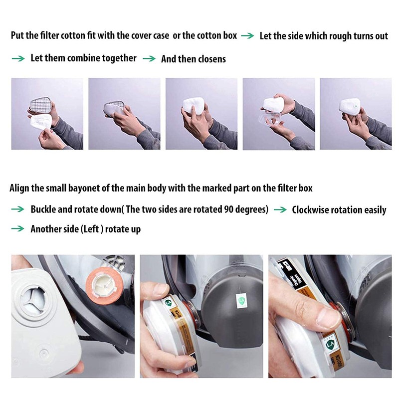 - 【Package Includes】1x Respirator, 2 x Replaceable Filter Boxes,8 x Filters Cotton, 2 x Plastic Covers /Caps.If you have any questions, please feel free to contact.