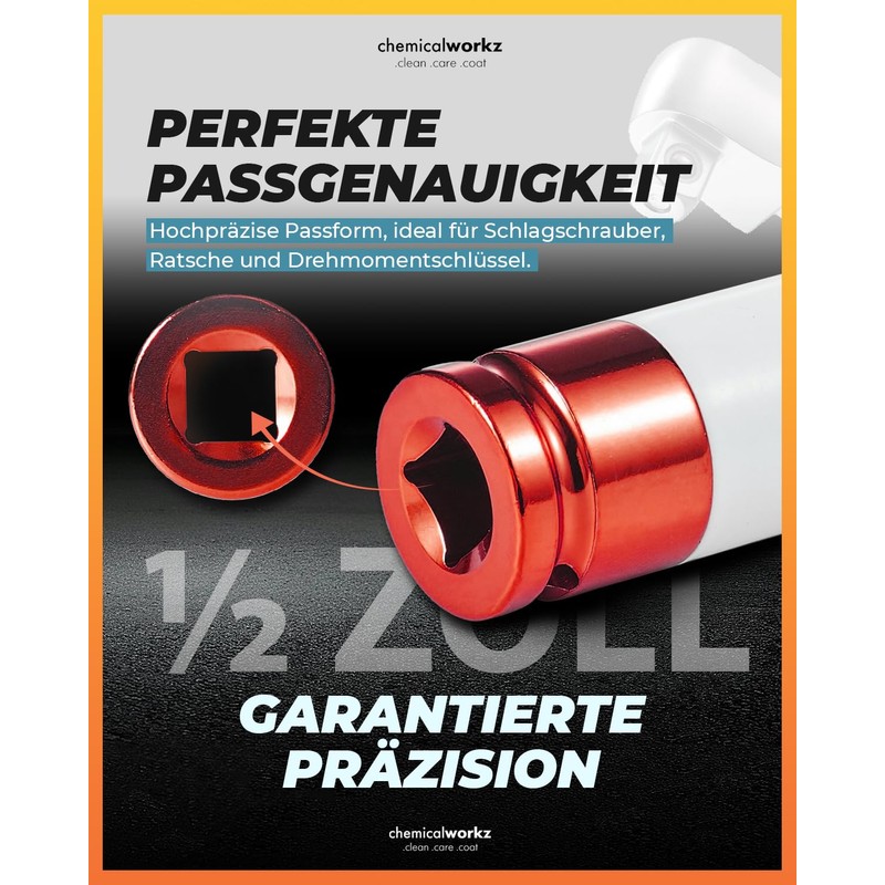 chemicalworkz Socket Spanner Set Protective Insert 17 mm 19 mm 21 mm ½ Inch Wheel Bolts Nut Set, High-Quality Cr-Mo Steel, Impact Wrench Nuts, Protective Nuts Wheel Change for Torque and Impact Wrench