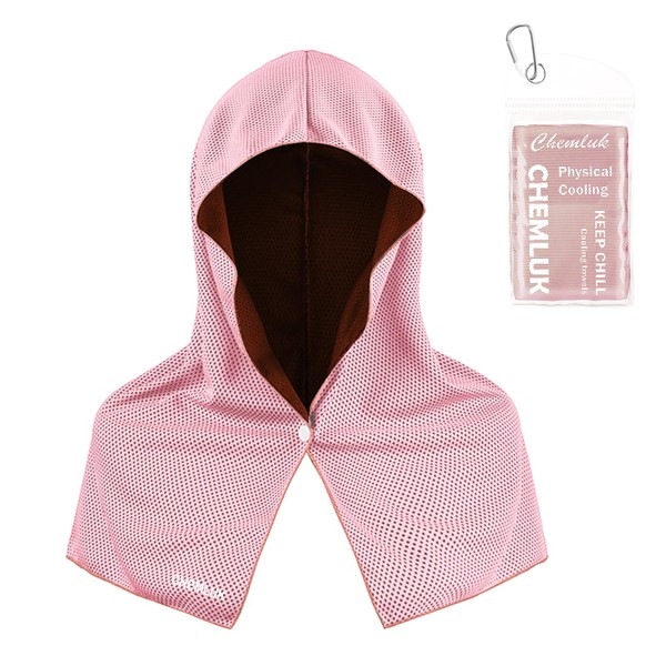 CHEMLUK Cooling Hoodie Towel Women - Cooling Towels for Neck and Face, Instant Cool When Wet, UPF 50 Sun Protection, Cool Towel for Hot Weather, Great for Sports, Gym, Golf, Camping - Pink