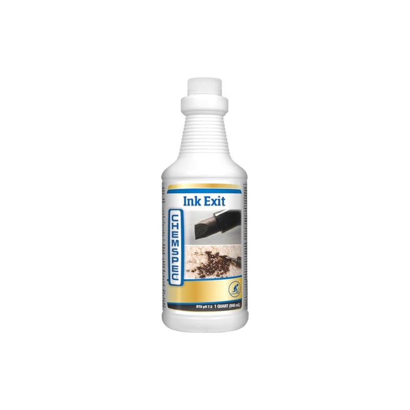 - Ink Exit is Chemspec’s breakthrough ink removal technology that removes ink stains fast without the use of harsh solvents. The product has no VOCs, which means no strong smells, and it is easy to apply. The product will not delaminate carpets and rinses clear with water. Make Ink Exit a part of your stain removal arsenal today!