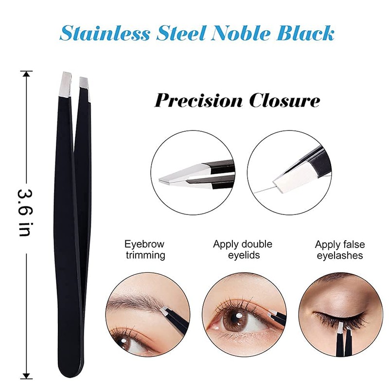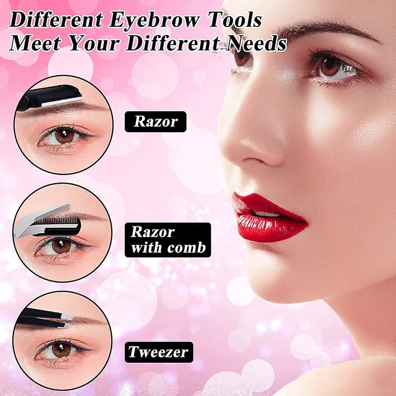 CHEN 3-in-1 Eyebrow Scissors Kit,Scissors Set for Women's Eyebrow Combing, Multifunctional Exfoliating Beauty Tool,Including;Eyebrow Trimmer Scissors, Slanted Tip Tweezers,Facial Razor(Black)