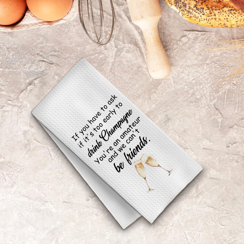 ChenCraty Funny Champagne Kitchen Towels, Gifts for Champagne Lovers Friends Dish Tea Bar Towels for Kitchen Bar Cart Decor, Sparkling Wine Lover Gifts Decorative Hand Towels, 16x24 Inches