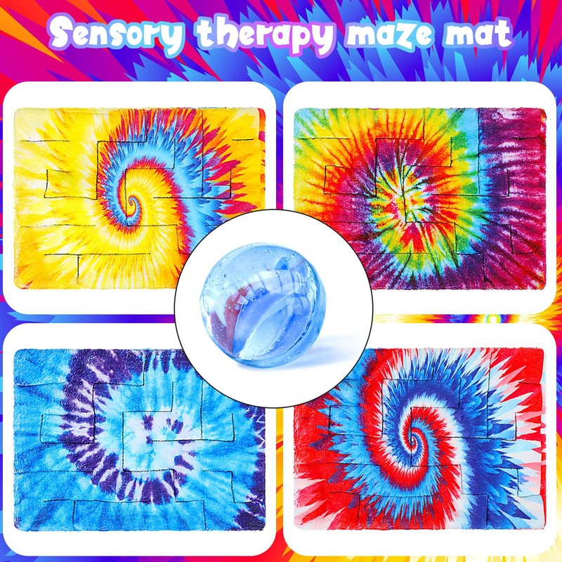 CHENGU 4 Alfombrillas de Laberinto de Mármol Tapete Sensorial para Aliviar el Estrés Juguetes Calmantes para Aliviar Ansiedad Adolescentes Escuela Hogar (Teñido Anudado, 8.66 x 6.3 Pulgadas)