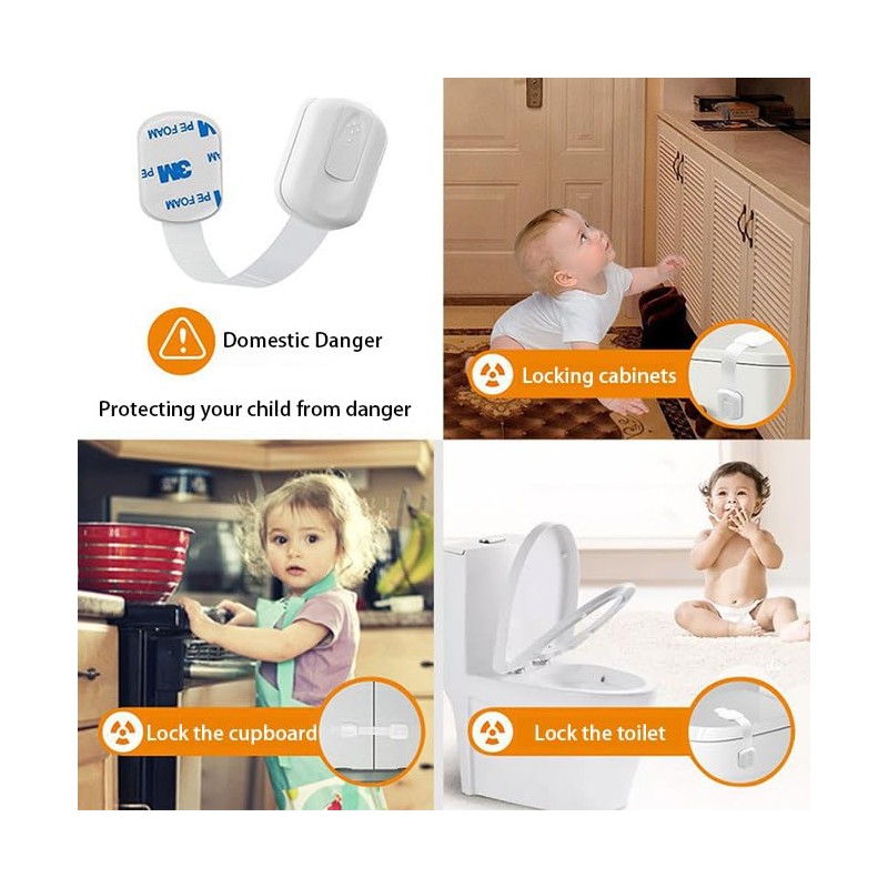 CHENGZI 6-Piece Baby Safety Locks with Adjustable Strap and Latch System