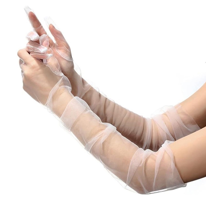 CHENGZI Long gloves 55cm mesh gloves Wedding dress tulle cuff Women's party accessories Bridal lace gloves (White, One Size)