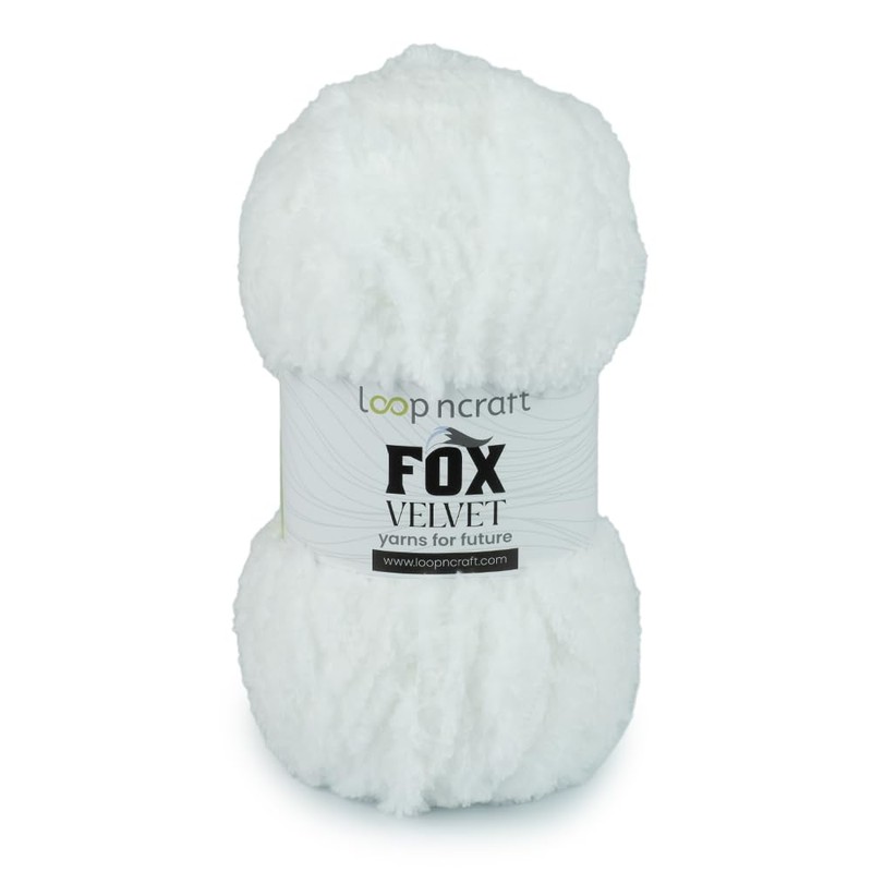 Chenille Garn, Weiß, Loopncraft, 100g, Fox Velvet, Plüschiges Garn mit Fransen