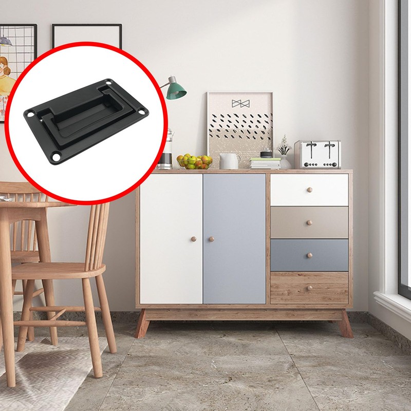 CHENJIN Embedded Folding Handle 95mmx60mm Black Toolbox Concealed Handle Panel Semi Metal Spring Ring Stainless Steel Black