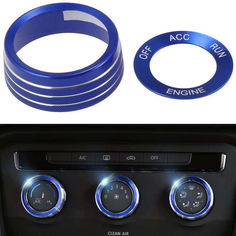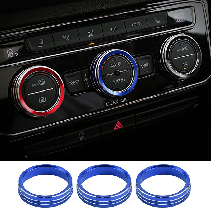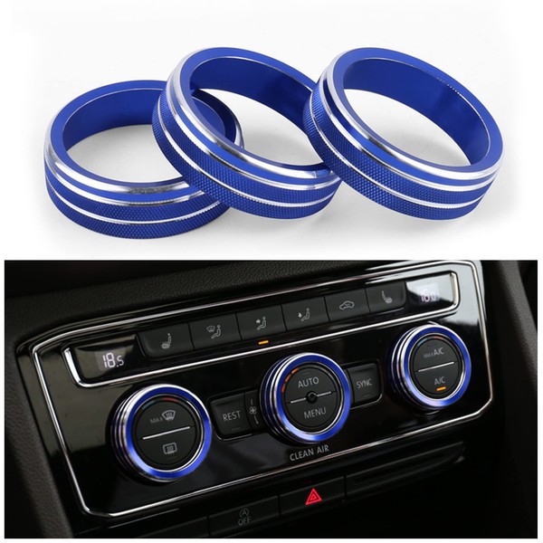 CHENNAN 3pcs Control AC Volume Knob Decorative Circle Cover Sticker Car Air Conditioning Switch Button Decoration Ring Blue AC Air Conditioning Switch Button Covers Metal Sticker Caps