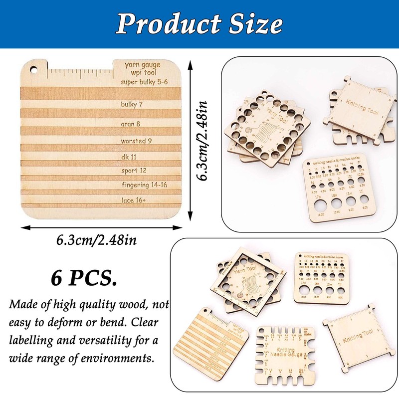 Made of high quality wood, clearly marked and multifunctional, you can quickly determine the needle number, WPI and yarn weight. A perfect multifunctional sewing and knitting tool for everyday use.