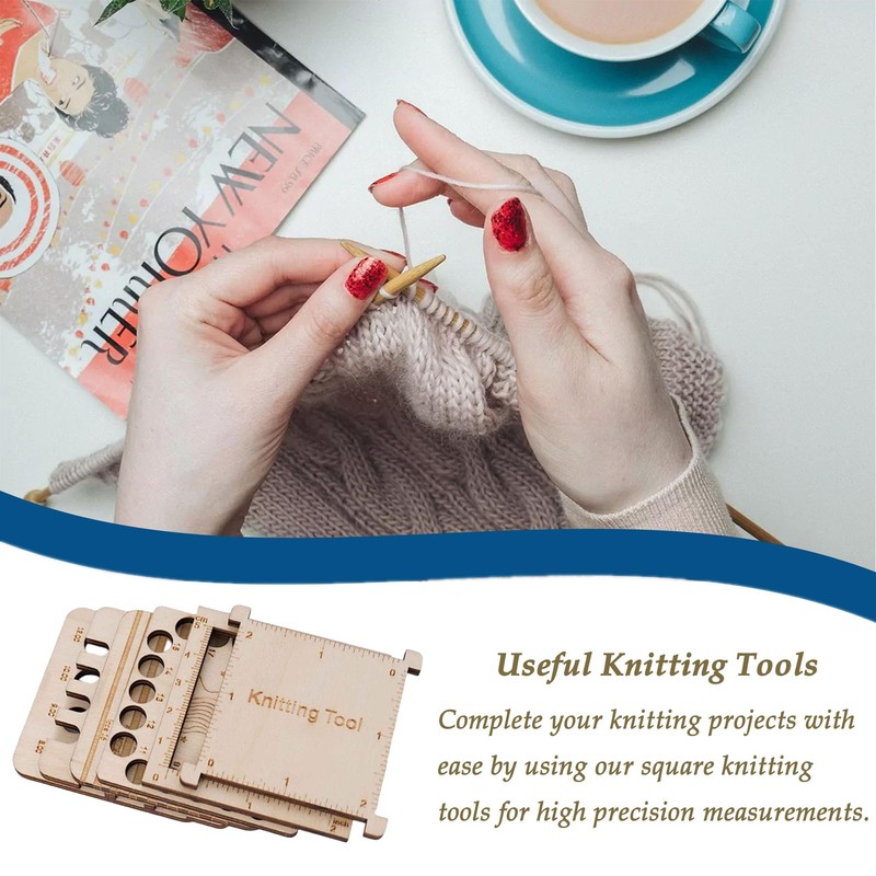 - Improved efficiency: This is a new model of a wooden knitting needle gauge, a square knitting tool that adds a touch of elegance and sophistication to your craft sets. Improve your knitting projects with the high precision measurements of our knitting needle gauge and ruler.