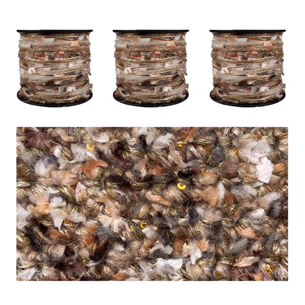 CHENURORA Artisanal Yarn Collection Multifiber Fancy Yarn with Sequins for Knitting Crocheting Crafts DIY, Set of 3 Rolls (Hazel Brown)