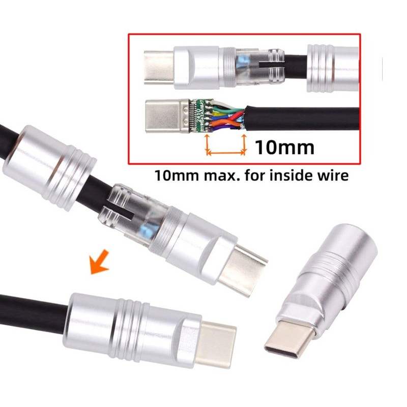 chenyang USB C DIY Connector Aluminum Alloy USB 3.0 Type C Male Plug Port Repair Replacement Solder Adapter for OD 4.0-6.0mm Cable Silver