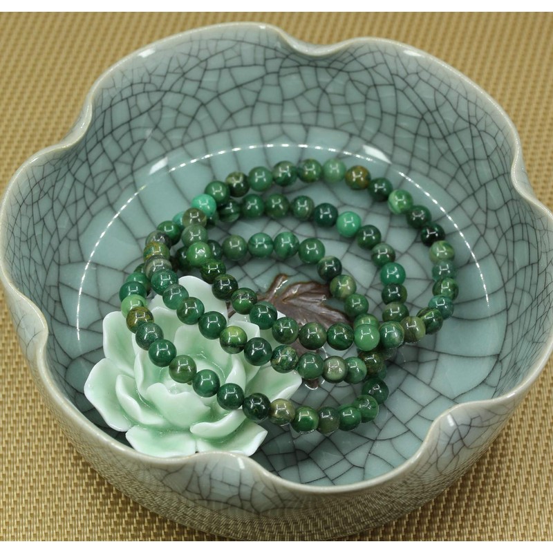 CHENYUE Natural African Serpentine Gemstone 6mm Round Beads Stretch Bracelet 7" Unisex