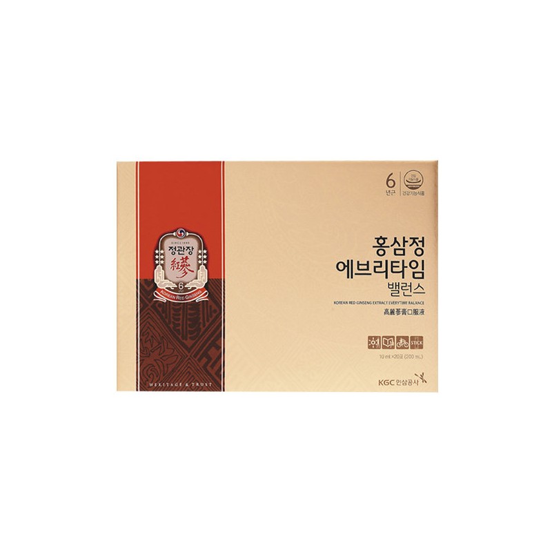 - Nutrition information: Everytime Balance: 1 packet (10ml) calories 10kcal, carbohydrates 2g (less than 1g sugar), protein 0g, fat 0g, sodium 0mg, ginsenoside Rg1+Rb1+Rg3 7.0mg, etc. See detailed page. Black garlic containing red ginseng: 1 packet: Calories 30 kcal, sodium less than 5mg, carbohydrates 7g (sugar 4g), fat 0g (trans fat 0g, saturated fat 0g), cholesterol 0mg, protein less than 0.5g
