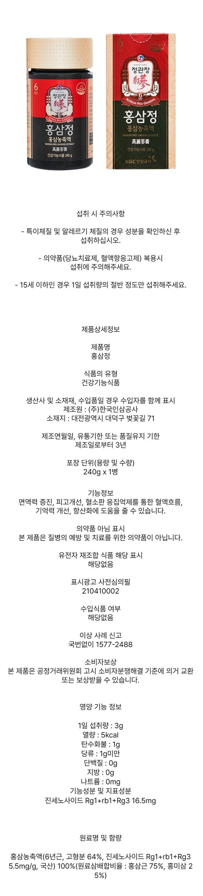 CheongKwanJang Red Ginseng Extract 240g Red Ginseng Concentrate / 정관장홍삼정240g홍삼농축액