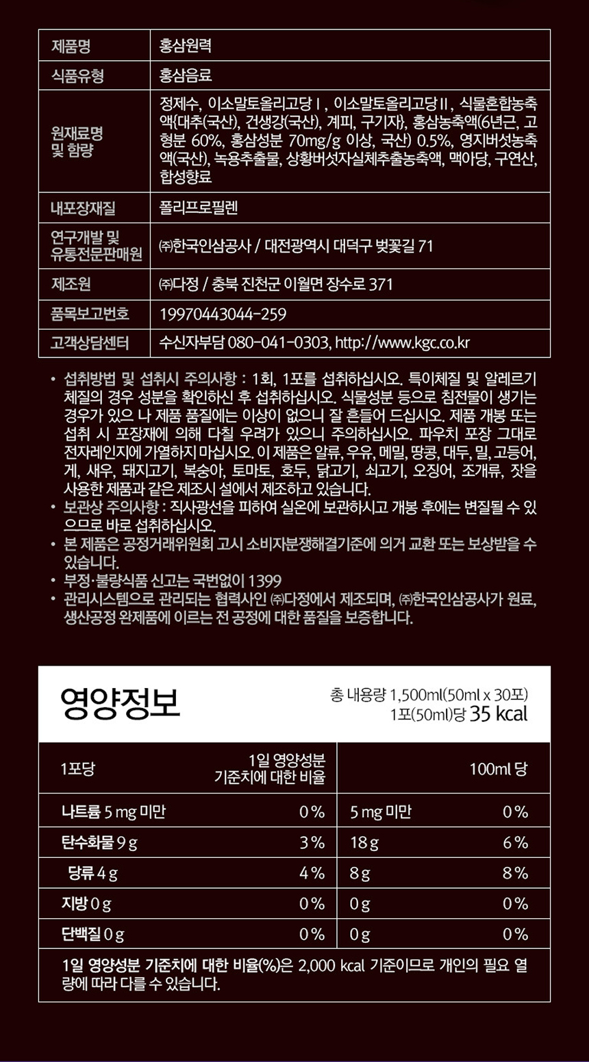 CheongKwanJang Red Ginseng Power 50ml 30 packs