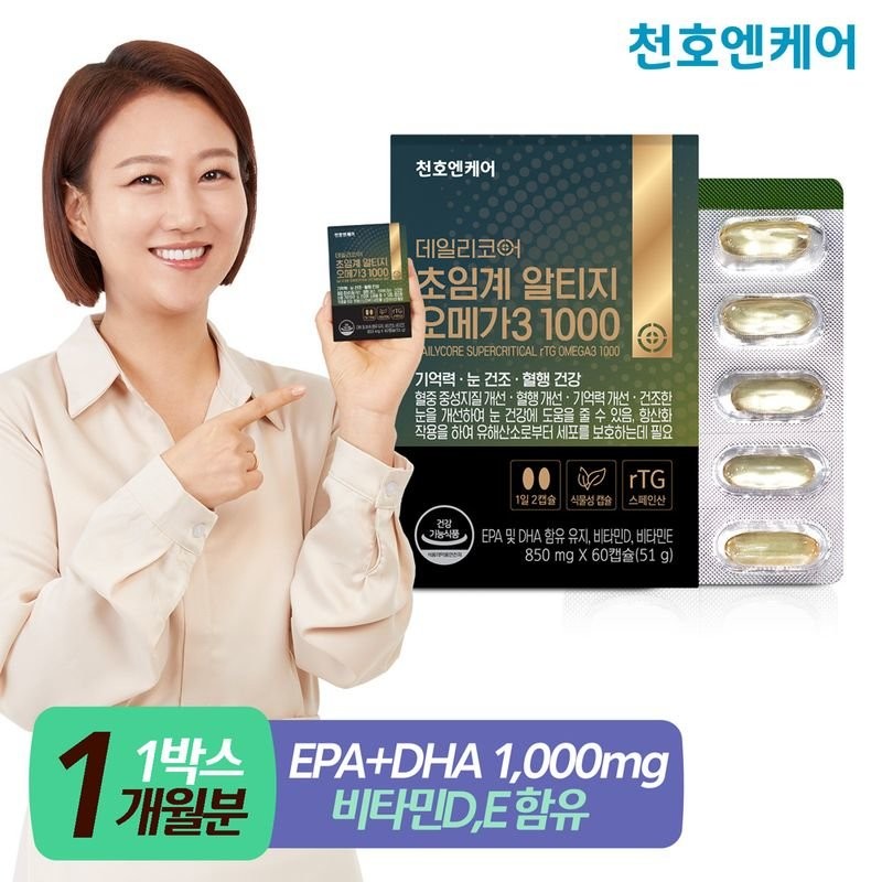 Cheonho NCare Daily Core Supercritical Altige Omega 3 1000 60 capsules 1 box, single option / 천호엔케어 데일리코어 초임계 알티지 오메가3 1000 60캡슐 1박스, 단일옵션