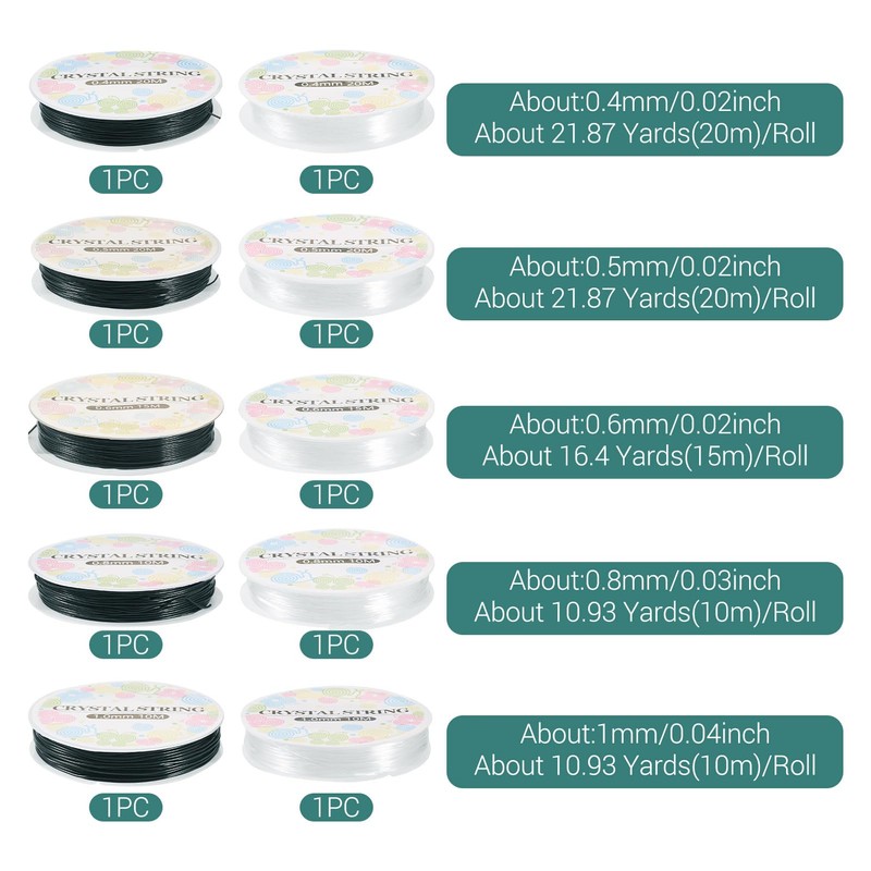 Cheriswelry 10 Rolls Crystal Elastic String Cord White Black Stretchy Bracelet String Transparent Elastic Bead Finishing Line Thread 0.4-1mm for Beading Sewing Jewelry Making Handicraft