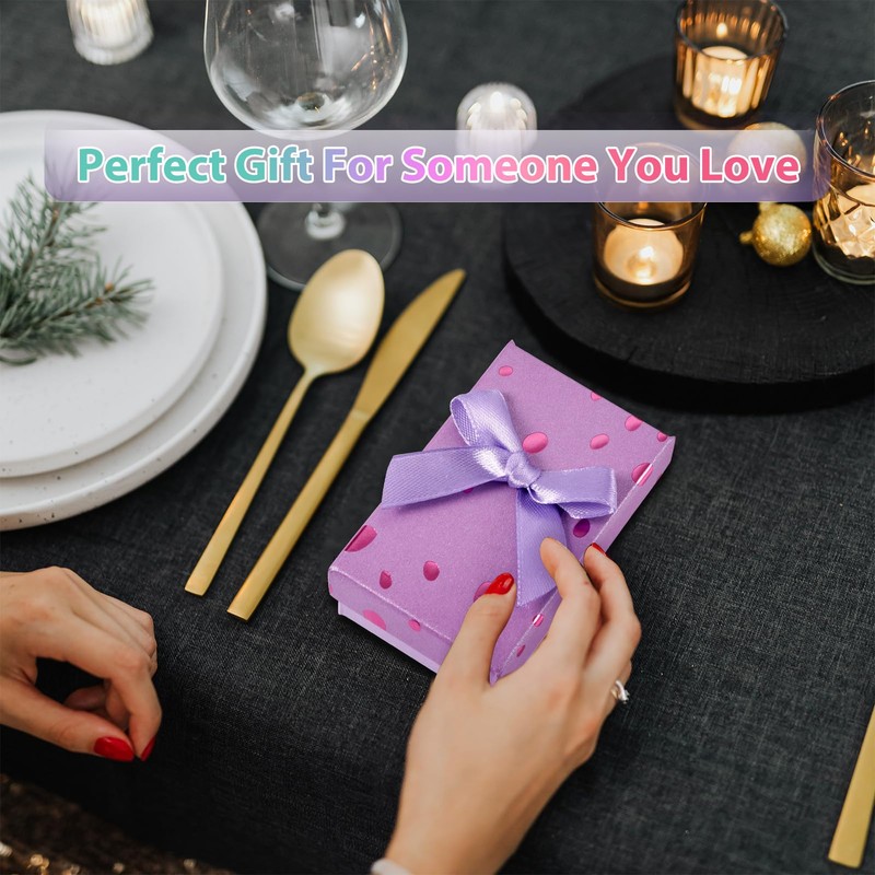 - High Quality ------These jewelry boxes are made from premium cardboard material, known for its durability and sturdiness. The rectangular shape with a lovely bowknot on top provides a classic and elegant look, making it a perfect packaging solution for various types of jewelry. The cardboard material is also lightweight, ensuring easy transportation and handling.