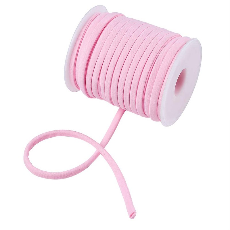 Cheriswelry 21.87 Yards 5mm Flat Nylon Cord Pink Soft Stretch Beading Strings Elastic Band Rope Chinese Knotting Cord Braided Fabric Threads for DIY Crafting Sewing Macrame Jewelry Making