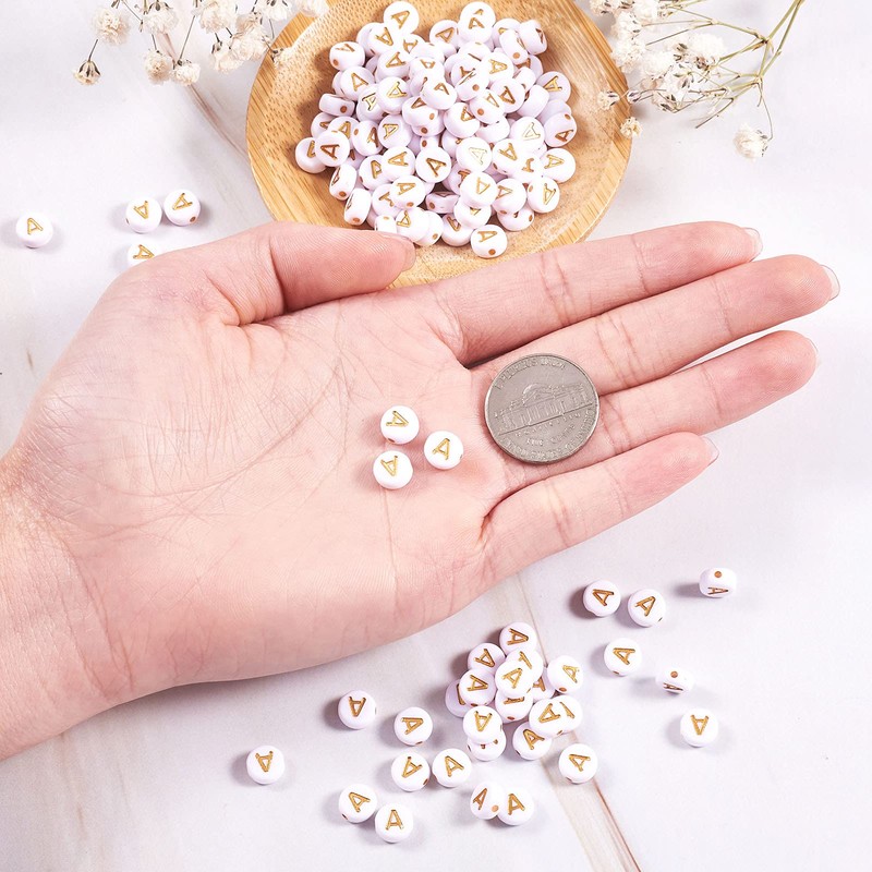 - Package Included: about 360 pcs flat round letter A beads with about 7mm in diameter, 3.5mm thick, hole: 1.2mm.