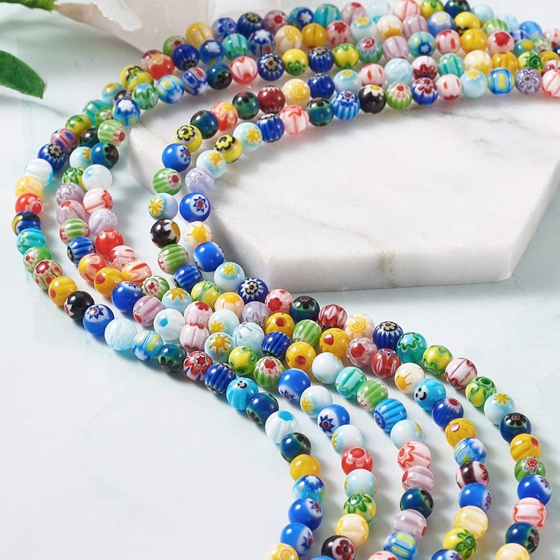 Cheriswelry About 325pcs Millefiori Glass Round Beads Strands 6mm Handmade Lampwork Flower Pattern Spacers Dangle Charms for Jewellery Crafts Making