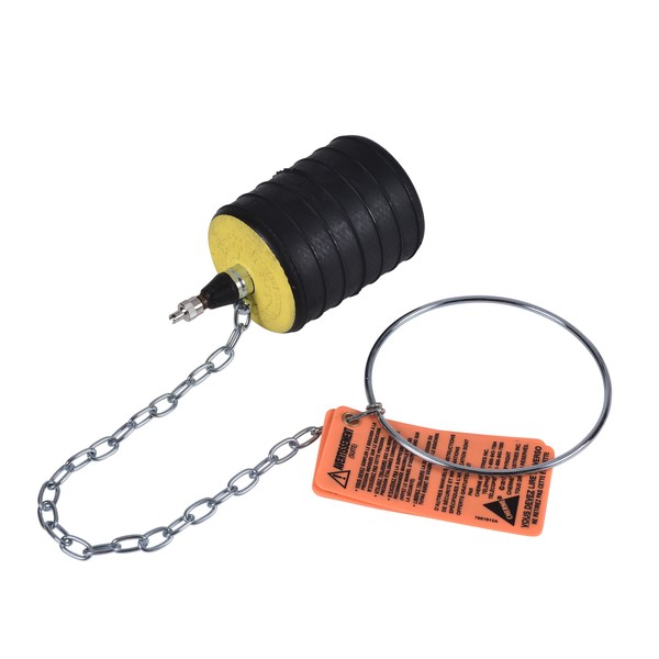 'Test Ball Plug, Pneumatic, Nominal Size 3-4 In, Min Dia 2.75 In, Max Dia 4.25 In, Max Back Air Pressure 13 PSI, Max Back Pressure 30 Ft of Head, Required Inflation Pressure 40 PSI, Deflated Size 23.75L x 2.38D In, Material of Construction Rubber, For Use In Waste Stack Testing'