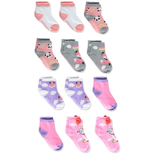 - 12 pairs of assorted infant/toddler shorty socks featuring fun, colorful prints and designs!