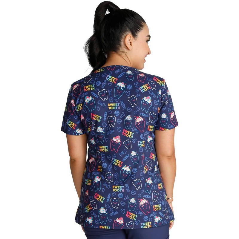 Cherokee Prints Women Scrubs Top V-Neck Print CK678, L, Sweet Tooth
