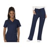 Cherokee Scrub Set for Women, V-Neck Top & Drawstring Flare Leg Pant, Soft 2-Way Stretch Easy Care Medical Uniform – CK00041C, XL, Navy