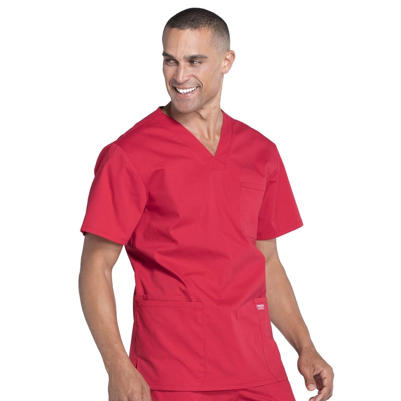 Cherokee Scrubs for Men Workwear Professionals V-Neck Four-Pocket Scrub Top WW695T, L Tall, Red