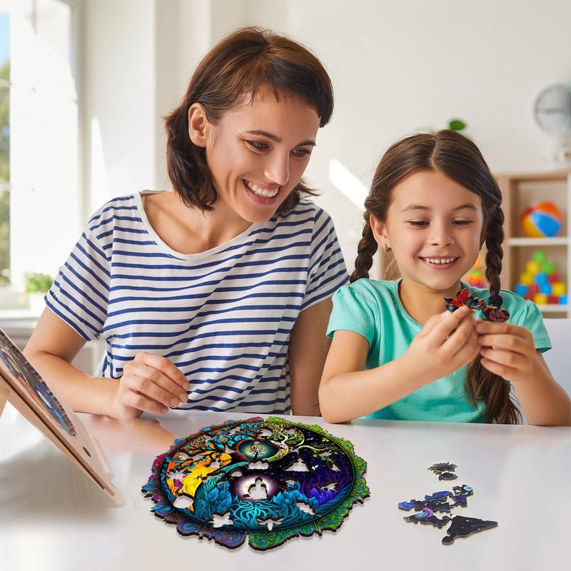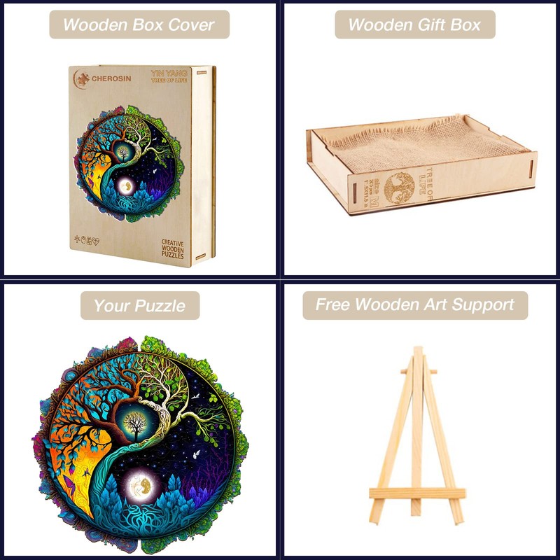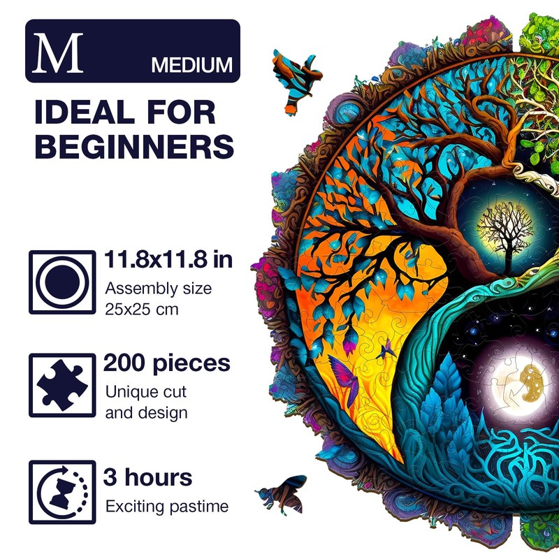 - [Unique Wood puzzle] 200 pieces yinyang sacred tree shaped design puzzle for adults, rich in colors and shapes for all challenge-ready puzzlers; With a finished size of 11.8" x 11.8", this difficult puzzle for adults has 20 small uniquely-shaped pieces for hours of brainstorming fun, and impressive wall decoration as the outcome