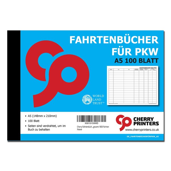 Cherry A5 Car Driving Logs on 100 Pages for 1800 Drives