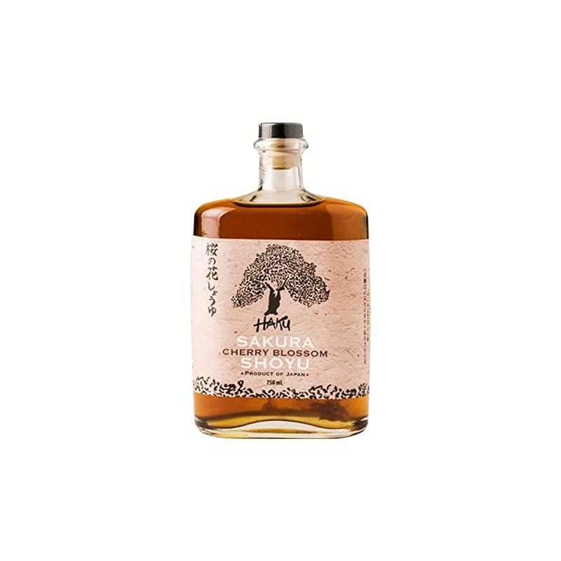 - Cherry blossoms dipped in red shiso vinegar brine and added to aging barrels of white shoyu for 1 year