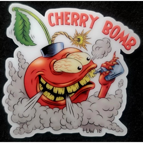 CHERRY BOMB STICKER "SMOKING CHERRIES" 2 3/4 X 2 3/4" GLOSSY THICK WATERPROOF