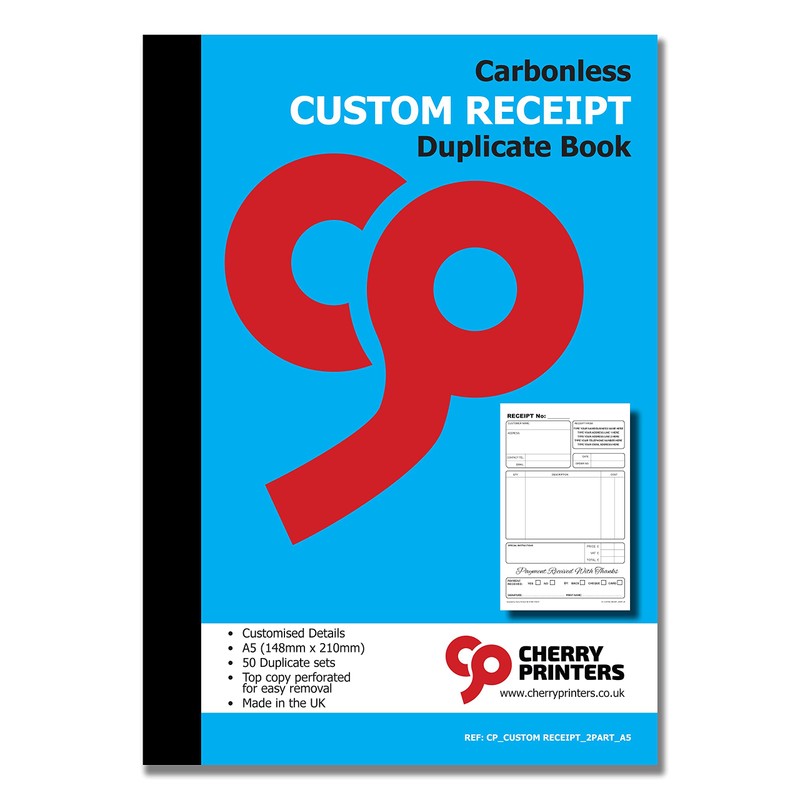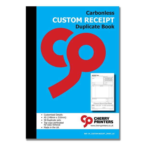 Cherry Carbonless NCR **Custom** Receipt Duplicate Book A5 50 Sets **8 Pack**