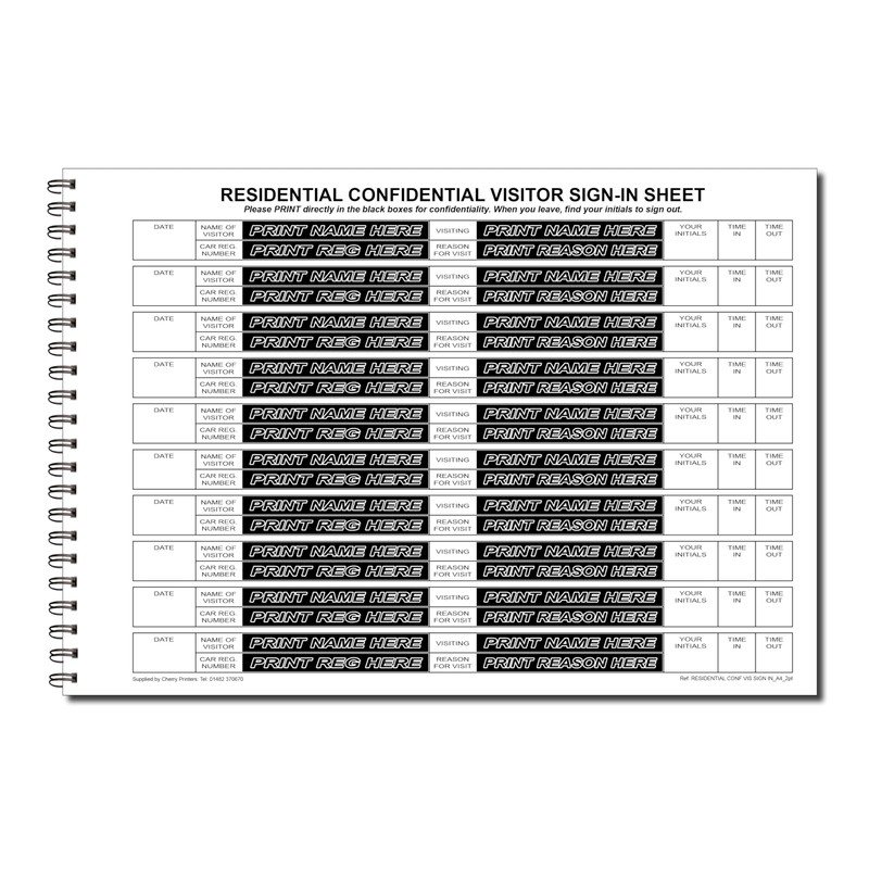 - 50 duplicate sets - each set glued together for added confidentiality, with a top copy blacked out for visitor privacy