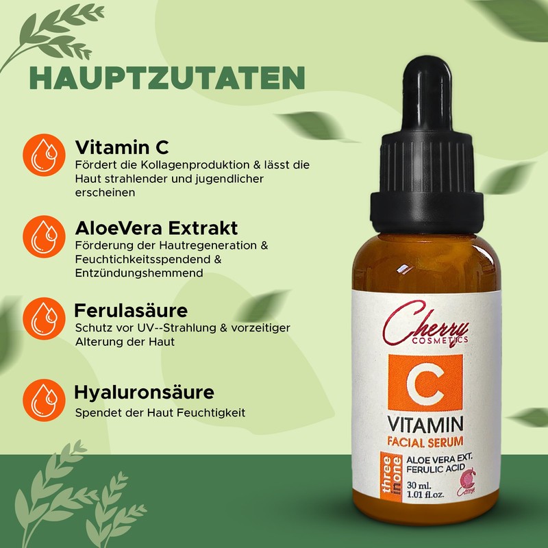 Cherry Cos Vitamin C Serum with Hyaluronic Acid and Anti-Wrinkle Instant Effect. Vitamin C Anti-Ageing, Skin Tag Solutions Face Serum. Moisturising Serum Against Pigment Spots, Pimples and Age Spots