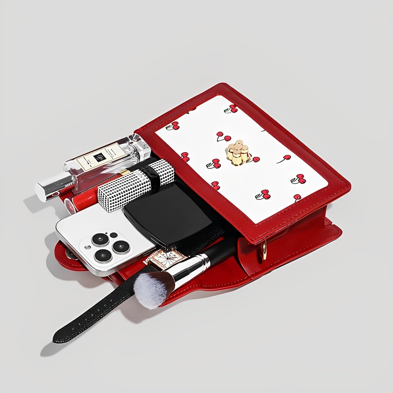 Cherry Leather Tote Bag – Cute Y2K Shoulder Purse for Women, Red Designer Handbag with Top Handle, Fruit Print Clutch Satchel, Square Bokendi Red, Casual