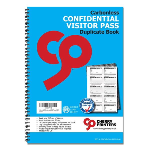 Cherry NCR Confidential Visitor Pass 90mm x 60mm Duplicate Book 300 Passes GDPR