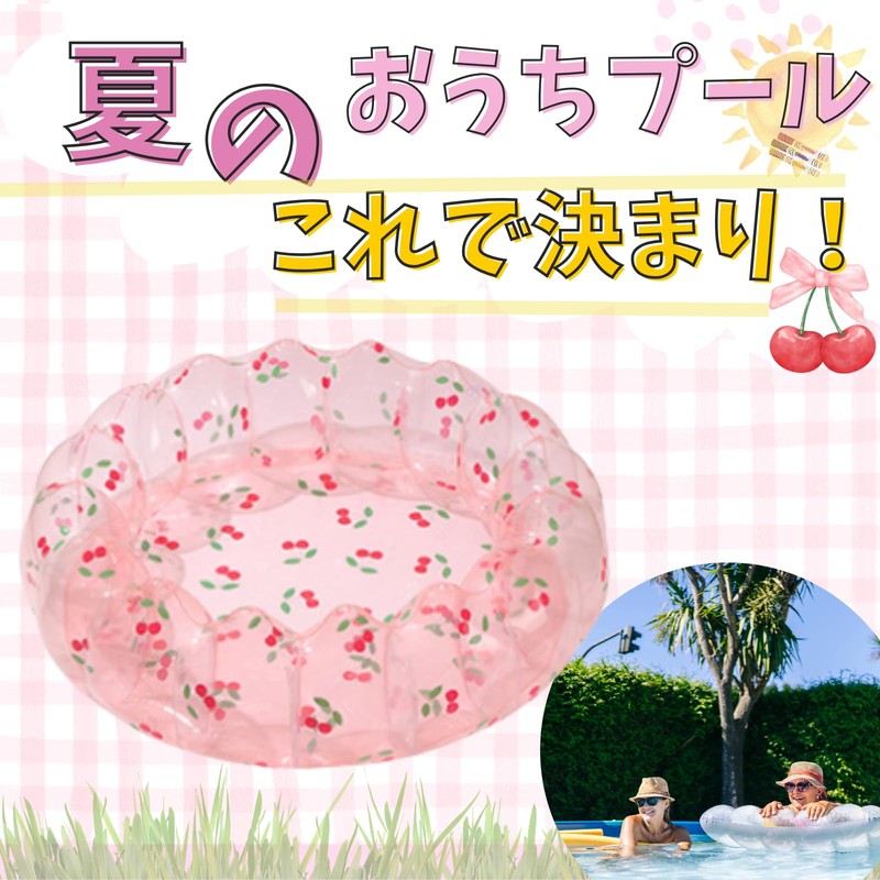 Cherry Pattern Vinyl Pool, For Children, Transparent and Cute, For Home Pools and Balls, 35.4 - 47.2 inches (90 - 120 cm)