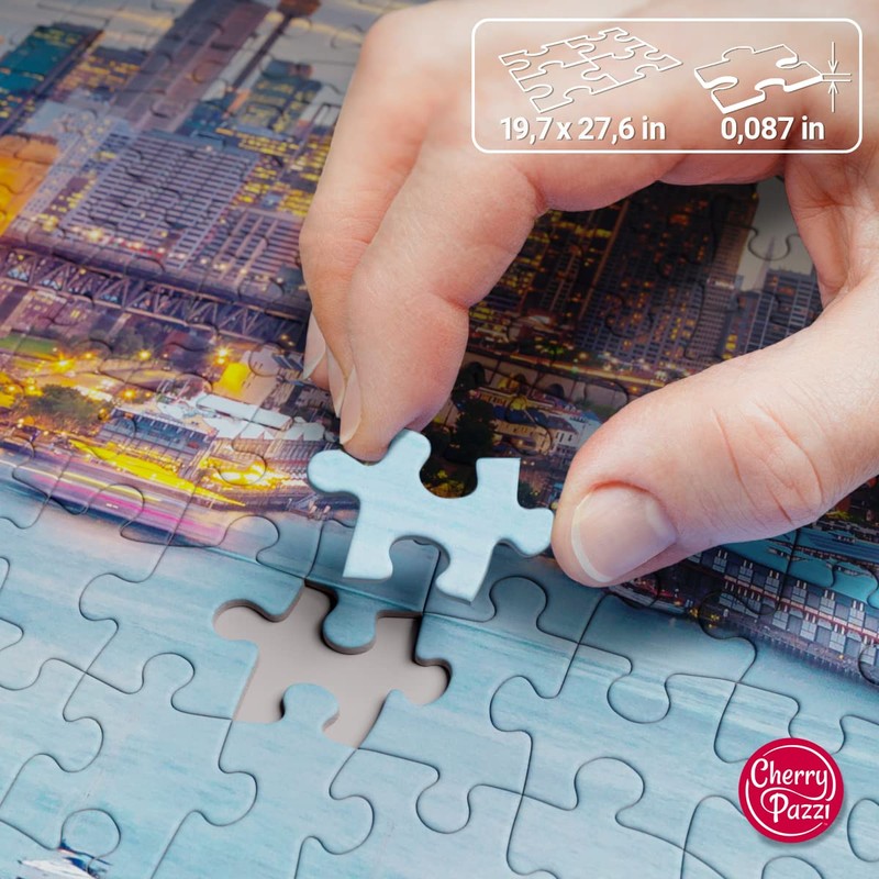 • PIECES THAT FIT PERFECTLY Our puzzle board is made of thick, strong, heavy material and our puzzle pieces are made of precision cutting technology, comfortable handling and exact fit. Puzzle 1000 pieces for adults use handmade puzzle punching tools used in production to make this puzzle perfect.