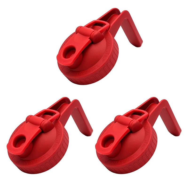 Cherry Red Pour & Store Pitcher Lid with Handle for Mason Jars (3 Pack Wide Mouth)
