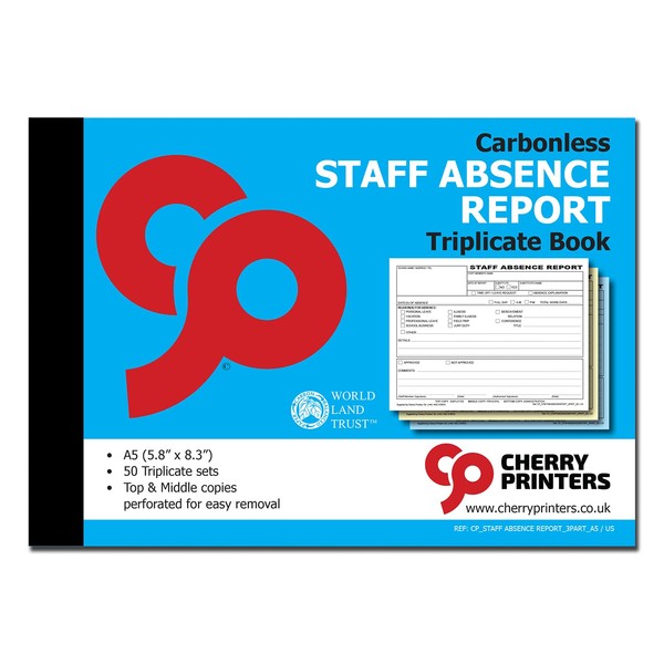 Cherry Staff Absence Report for Schools 3pt (5.8 inches x 8.3 inches) 50 Triplicate Copies per Book