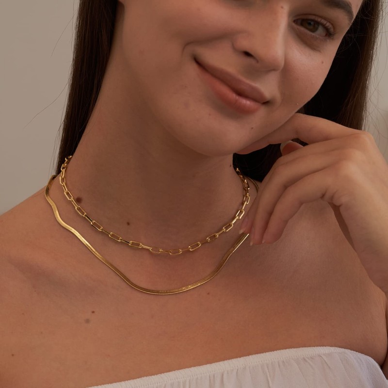 CHESKY Necklace for Women, 14k Gold Plated Layered Herringbone Paperclip Chain and Double Snake Chain Necklace Dainty Choker Necklaces