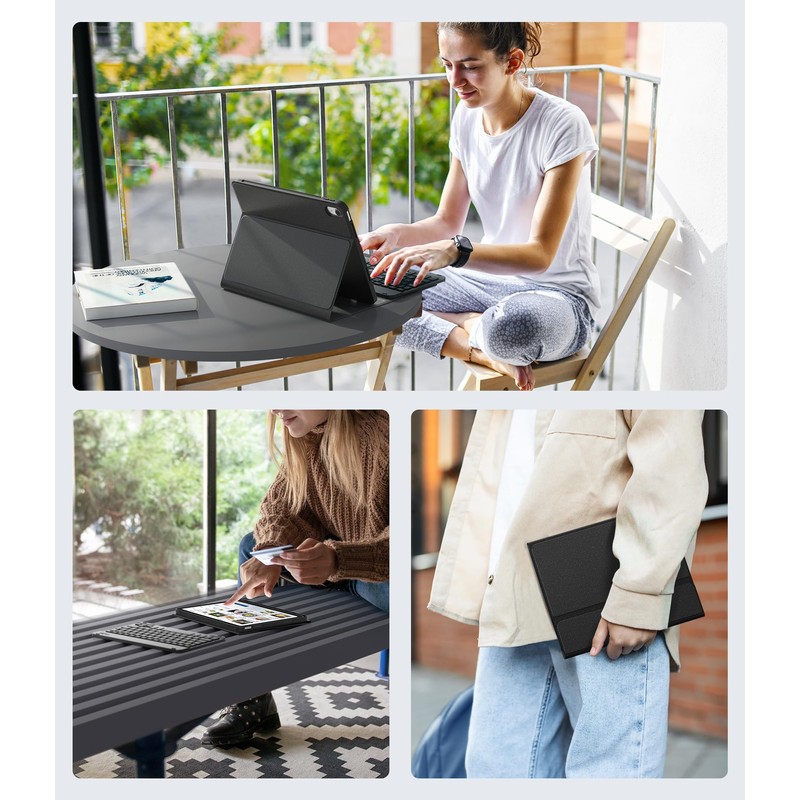 • Multi-purpose & Ultimate Protection Work, create, or relax effortlesslyanywhere, anytime. This sleek keyboard case is crafted for seamless use across all scenarios, whether you're typing documents, taking notes, streaming content, or studying. Precisely cutouts ensure uninterrupted access to ports, cameras, and controls, while a rugged design shields your iPad from scratches, drops, and daily wear. Lightweight yet durable, it combines full-featured protection with everyday convenience.