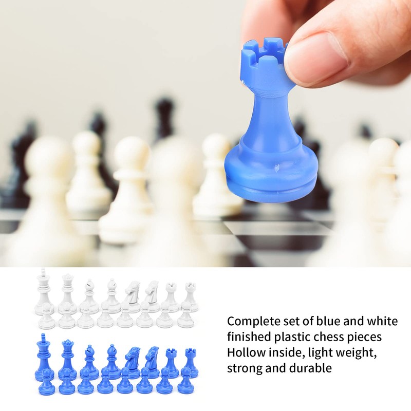 - Lightweight and Portable: The blue and white finished chess pieces are hollow inside, which makes them lightweight and portable.This way, you can easily take your game with you to school, a cafe, or your friend's house.